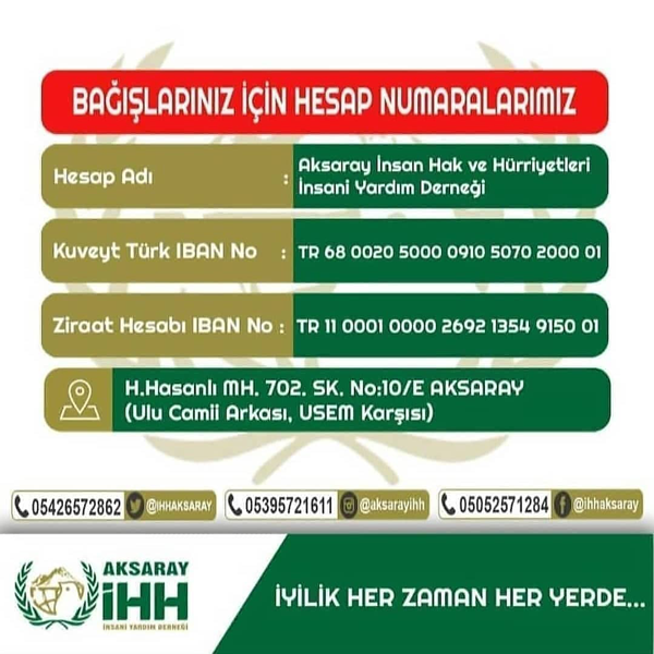 AKSARAY İHH HESAP NUMARALARIMIZ |