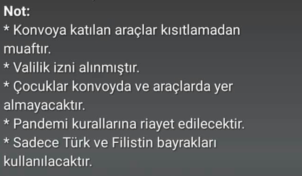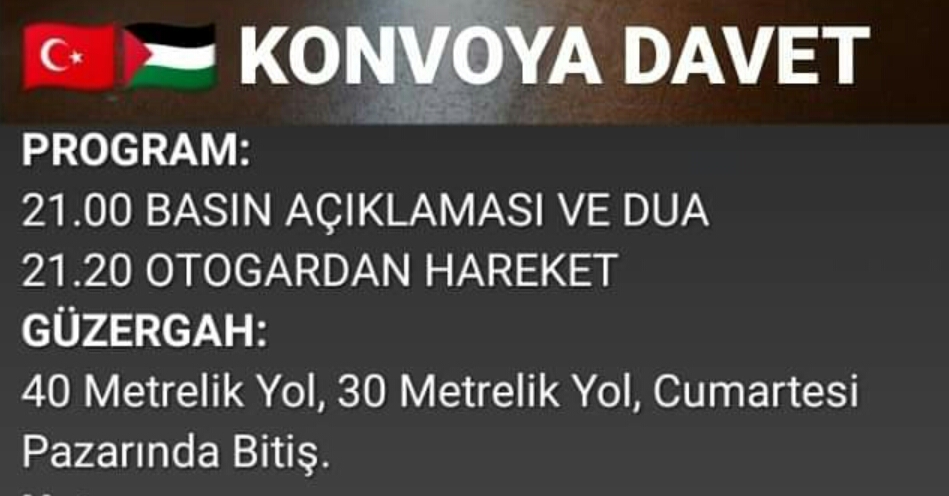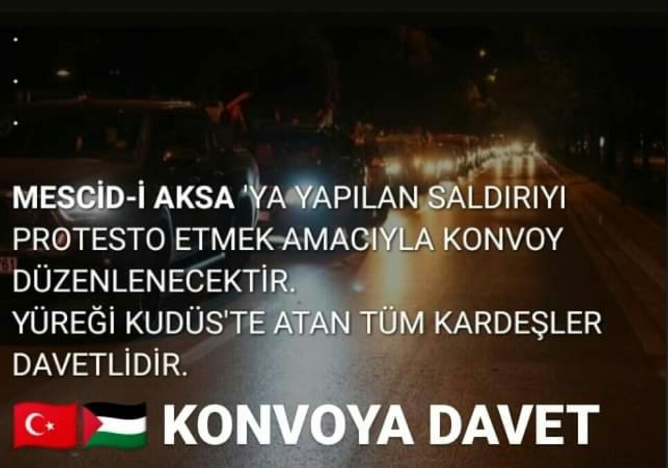 Mescid-i Aksa'ya yapılan saldırıyı protesto etmek amacıyla konvoy düzenlenecektir.