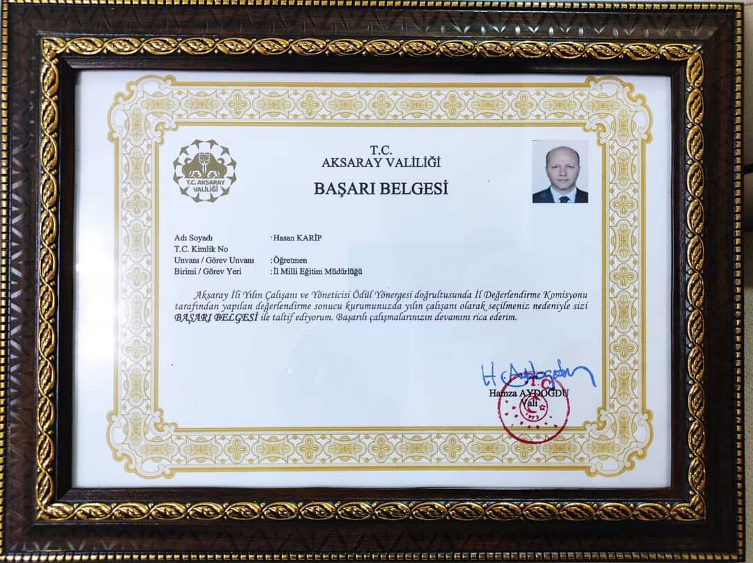 Aksaray İHH Yetim Birim Başkanımız Hasan Karip Aksaray Valiliği tarafından tertiplenen Yılın Çalışanı ve Yöneticisi Seçimi Komisyonu tarafından Milli Eğitim Müdürlüğü camiasında yılın çalışanı olmaya layık görülmüştür.