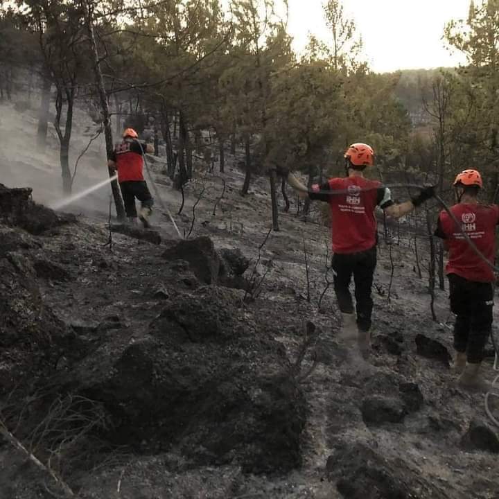Ekiplerimiz bir yandan yangın söndürme çalışmalarına destek verirken, diğer yandan günde 2000 kişiye yemek ikram ediliyor.
