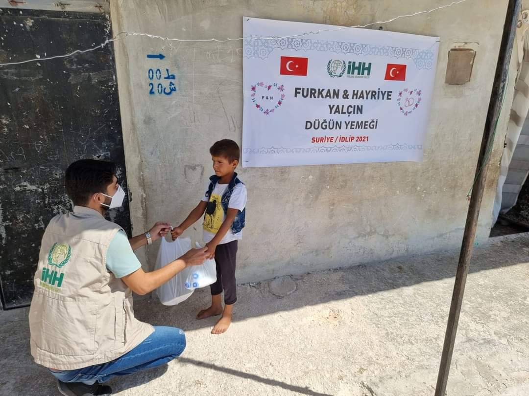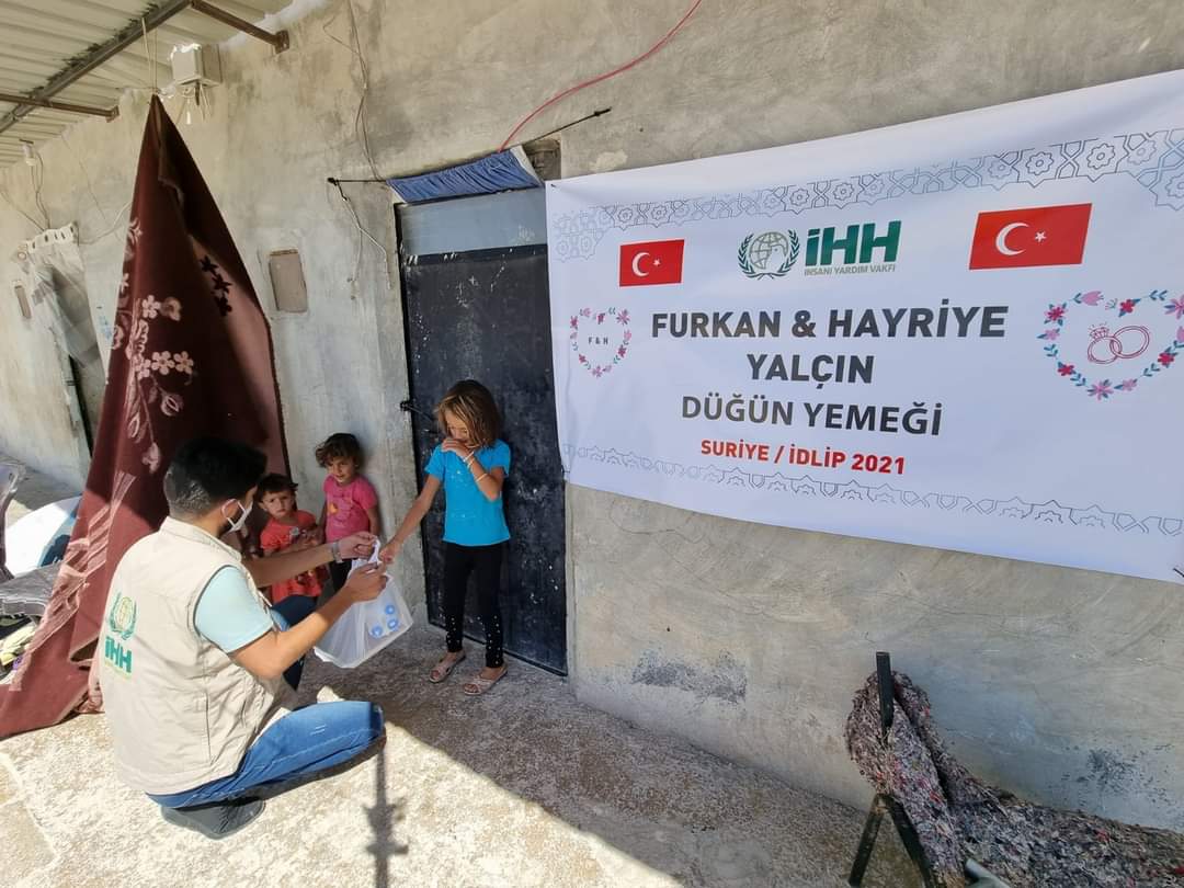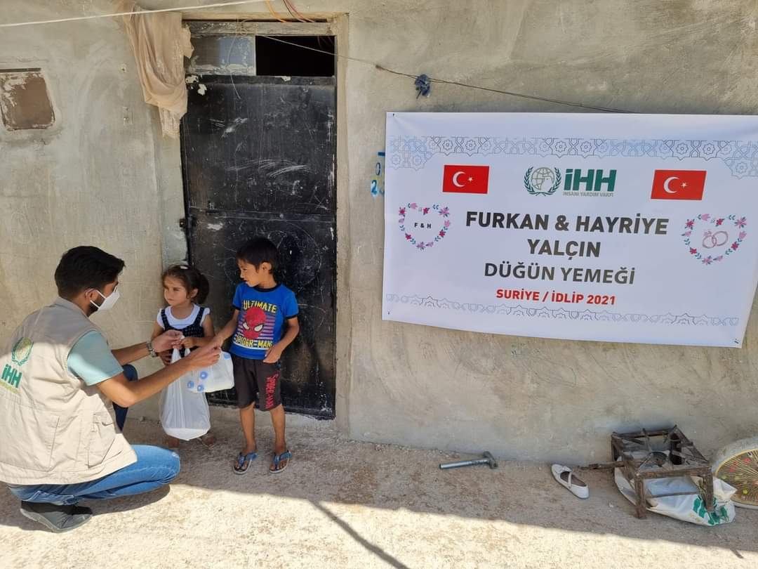 Yakında evlenecek olacak genç çift, düğünlerinde misafirlere ikram edecekleri yemeği Suriye'de kamplarda yaşayan yetim ailelere bağışlamayı tercih ettiler.