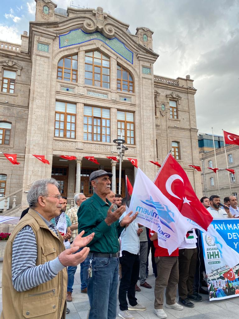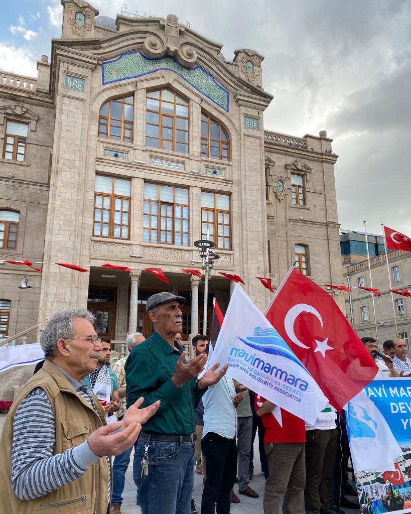 Gazze'ye insani yardım taşıyan Mavi Marmara Gemisi'ne yapılan saldırının 12. yıldönümünde “Mavi Marmara Yoluna Devam Ediyor!” sloganıyla 15 Temmuz Milli İrade Meydanı'nda yaptığımız Basın Açıklaması.