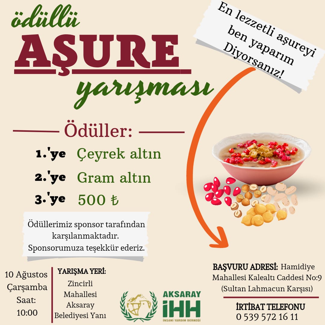 Aksaray İHH İnsani Yardım Derneği'miz tarafından Ödüllü Aşure Yarışması düzenlenecektir.