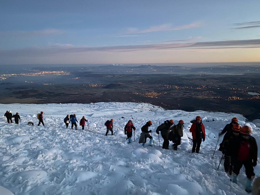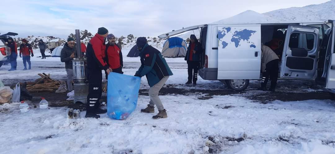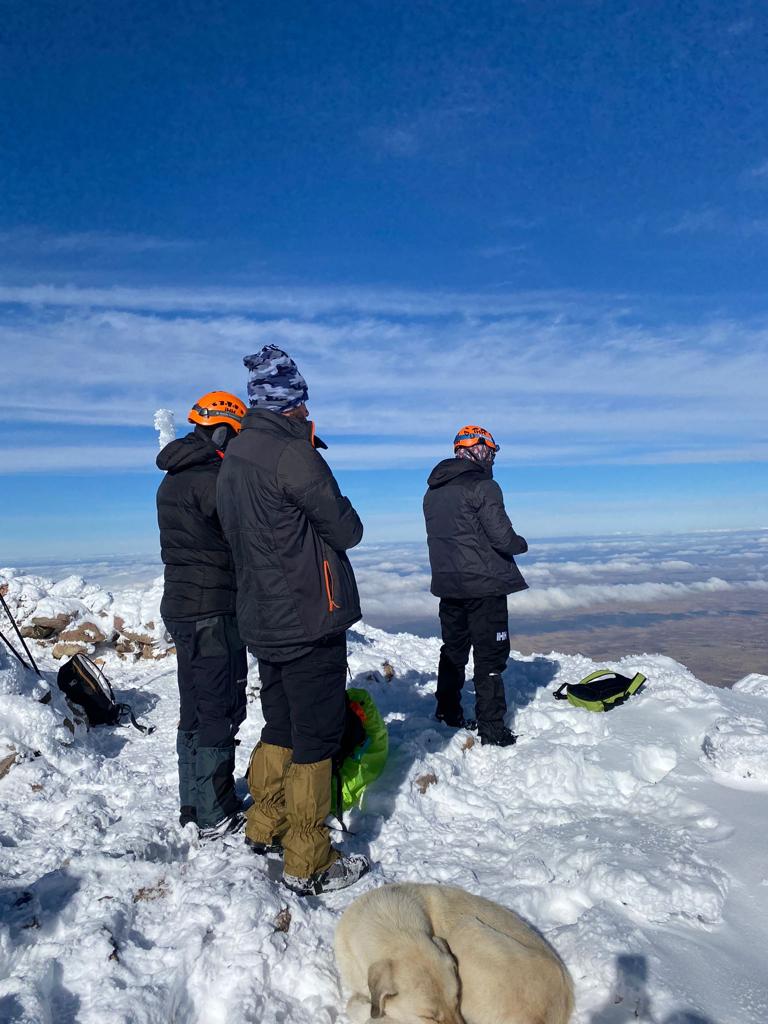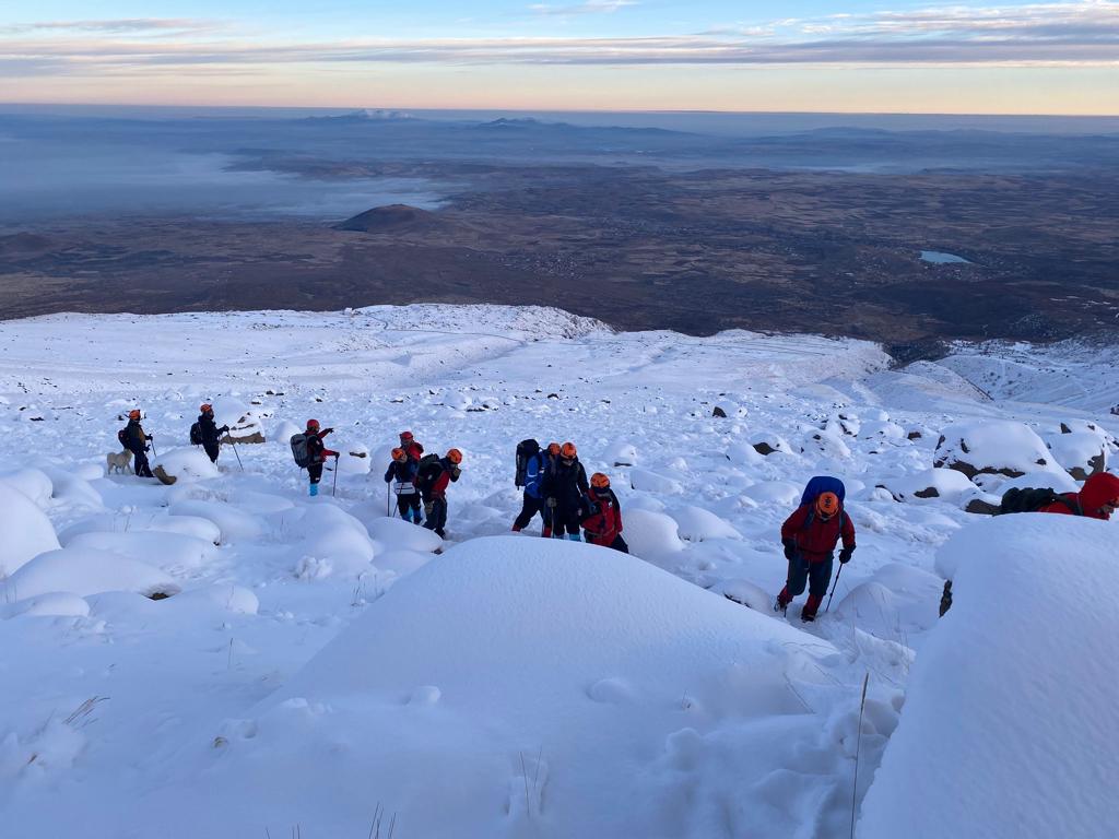 Cumartesi gecesi Hasandağı'nda kamp kuran ekiplerimiz pazar günü sabah erken saatlerde zirve tırmanışına başladı.