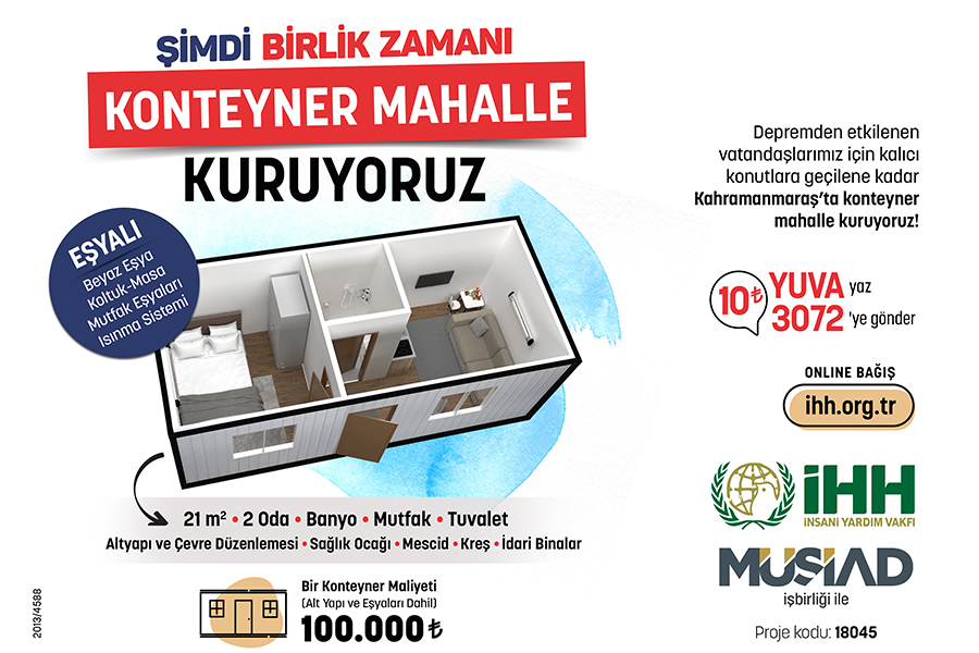 Konteyner mahalle, AFAD koordinasyonunda MÜSİAD iş birliği ile gerçekleştirilecek ve kış mevsiminde yüzlerce ihtiyaç sahibine sıcak bir yuva olacak.