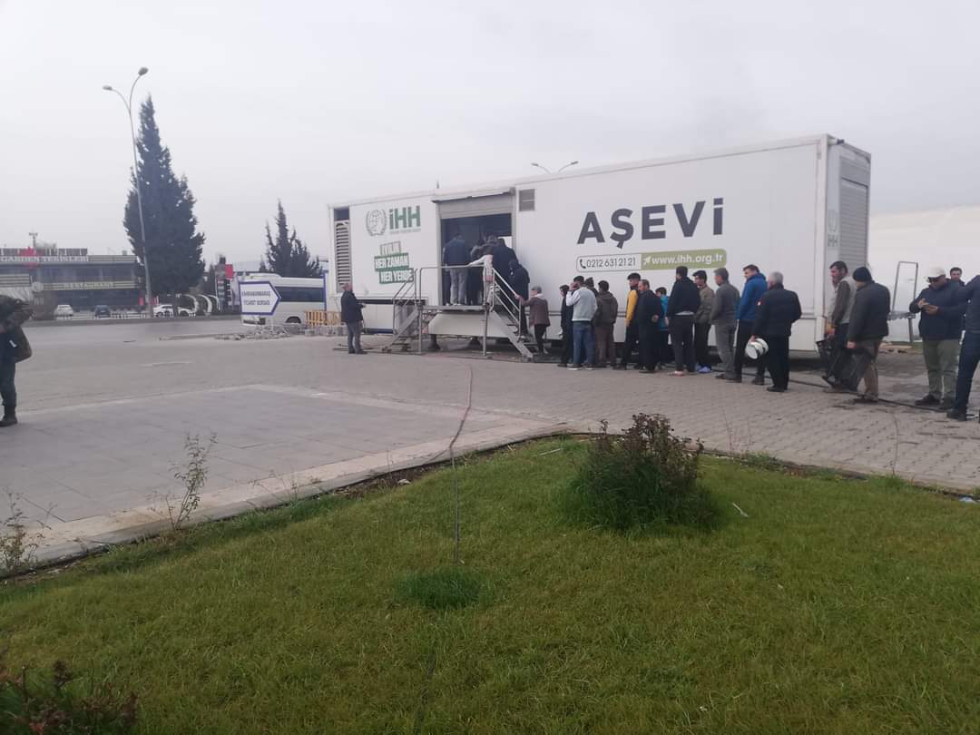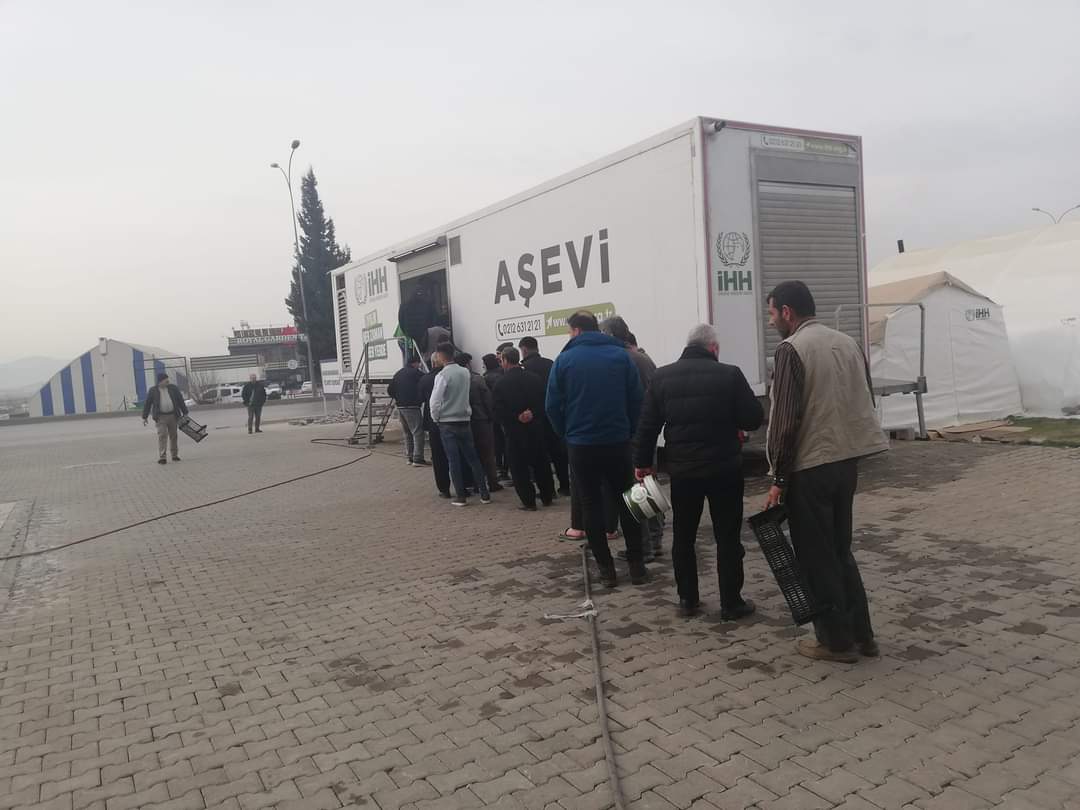 An itibariyle Kahramanmaraş aşevimizde kahvaltı ikramı. Lojistik depoya indirilen yardım malzemeleri depremzede ailelere buradan ulaştırılıyor.
