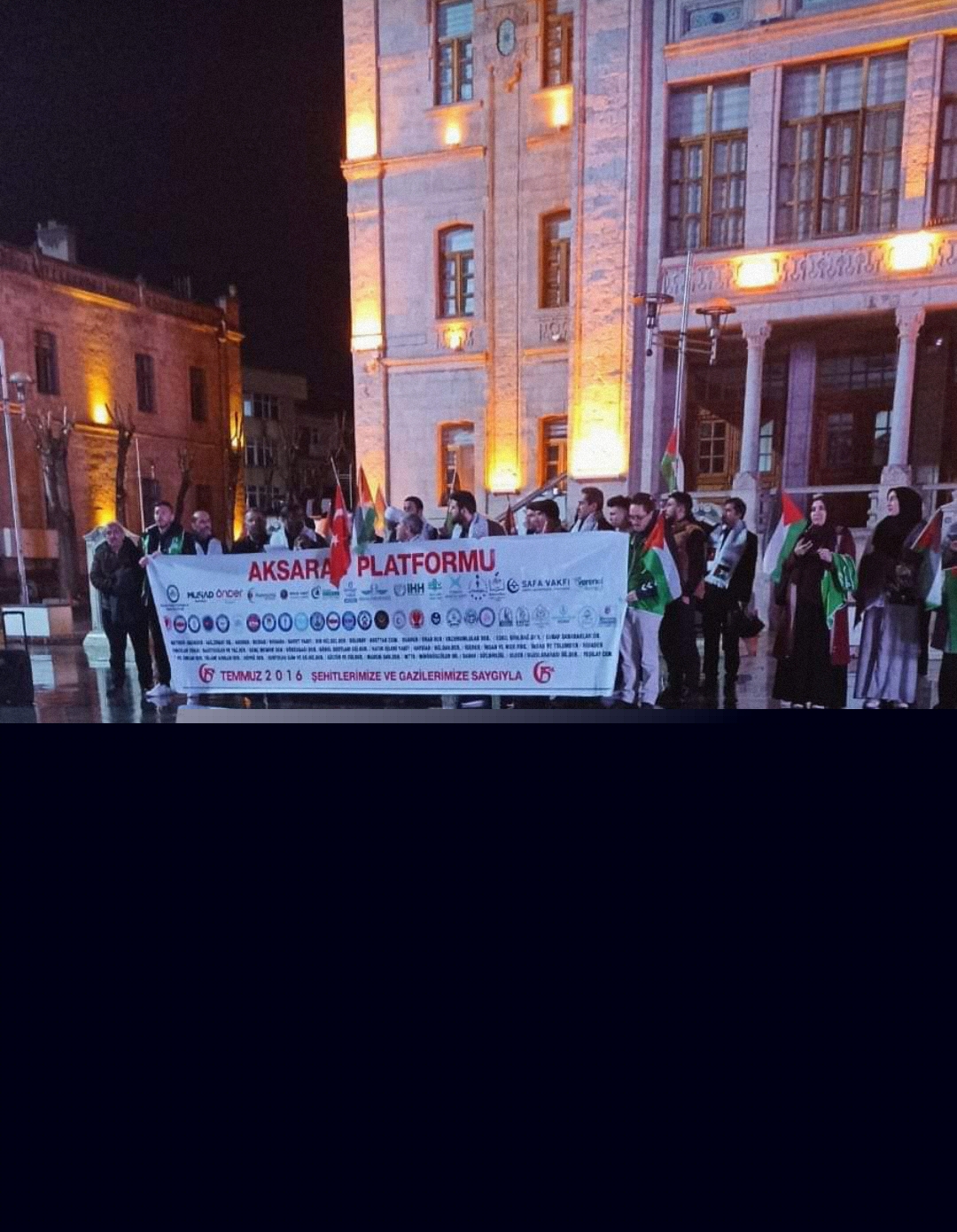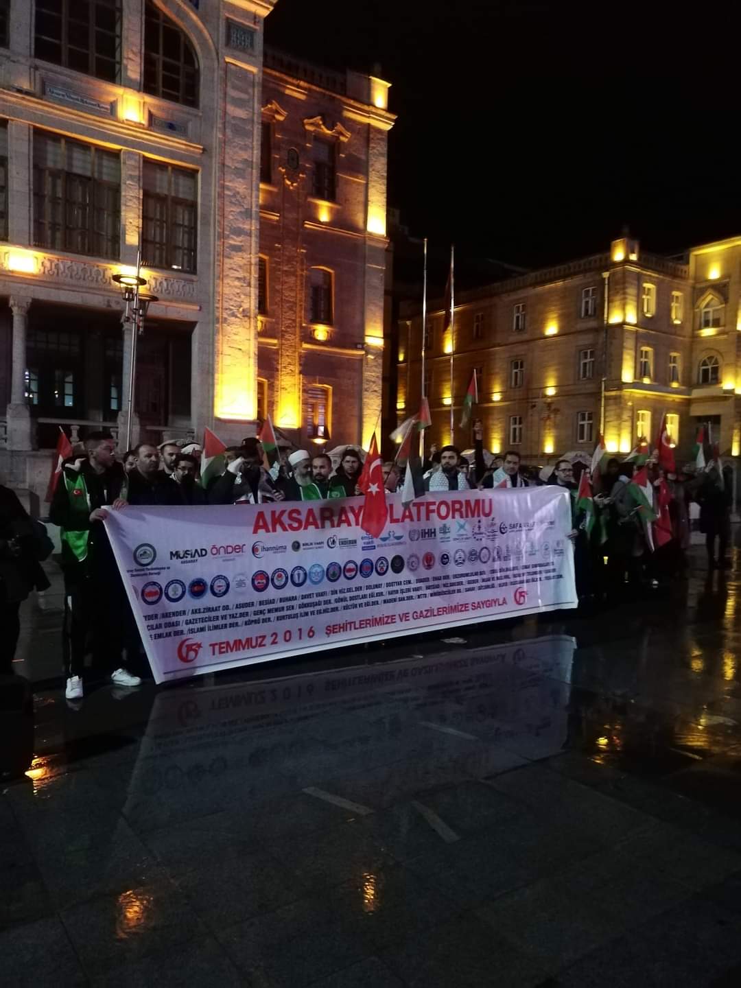 Buradan kanaat önderleri, sivil toplum kuruluşları, islam liderleri, vicdan sahiplerine çağrıda bulunuyoruz. Bir araya gelin ve İsrail’in planlarını hep beraber bozalım! Bütün tabelaları bırakalım. Onlar sadece kimlik. Tabelamız Mescid-i Aksa’dır, tabelamız Kabe’dir, tabelamız insandır, tabelamız adalettir, tabelamız mazlumdur. Haydi seferber olalım. Teyakkuzda olalım. Meydanlara inelim. Hep beraber İsrail’e ders verelim.