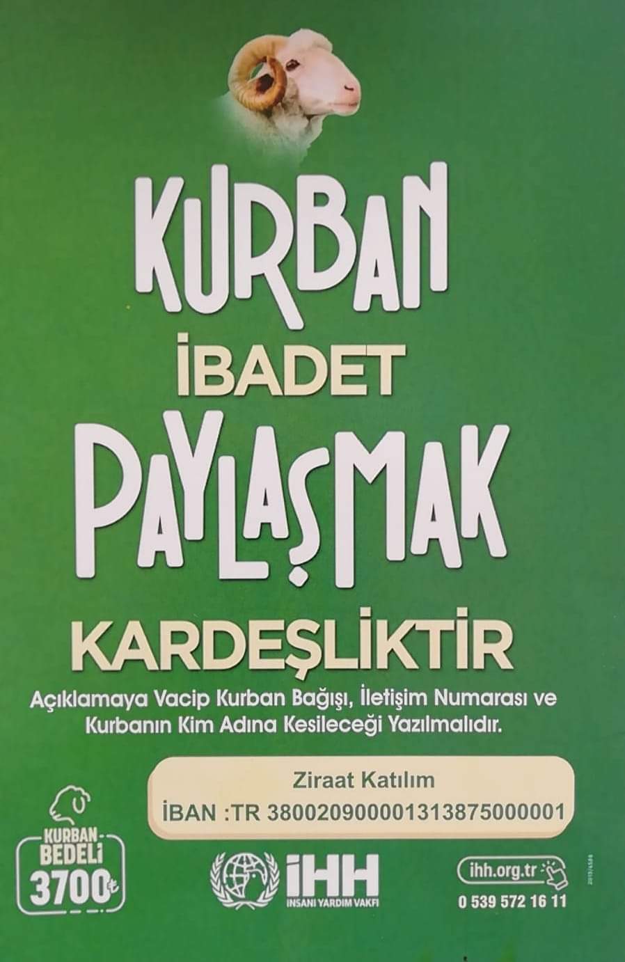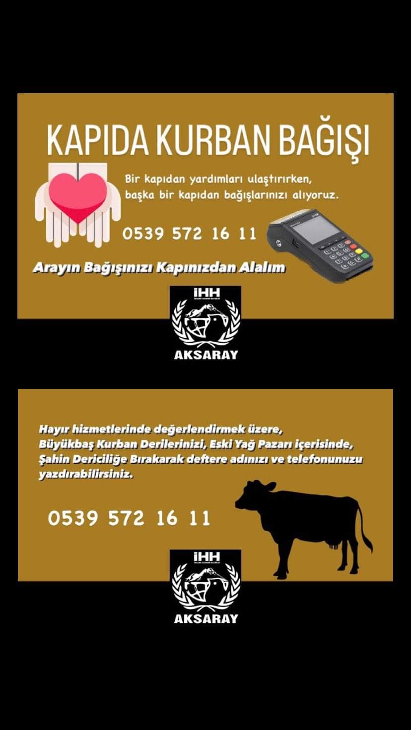 Kurban Bayramının 2. günü saat 23:00'a kadar KURBAN BAĞIŞI kabul edilecektir.