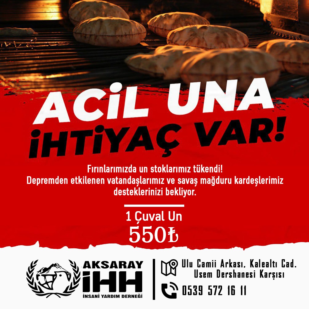 İHH fırınlarımızda un stokları tükendi. Depremden etkilenen vatandaşlarımız ve Suriye'deki savaş mağdurları için desteklerinizi bekliyoruz.
