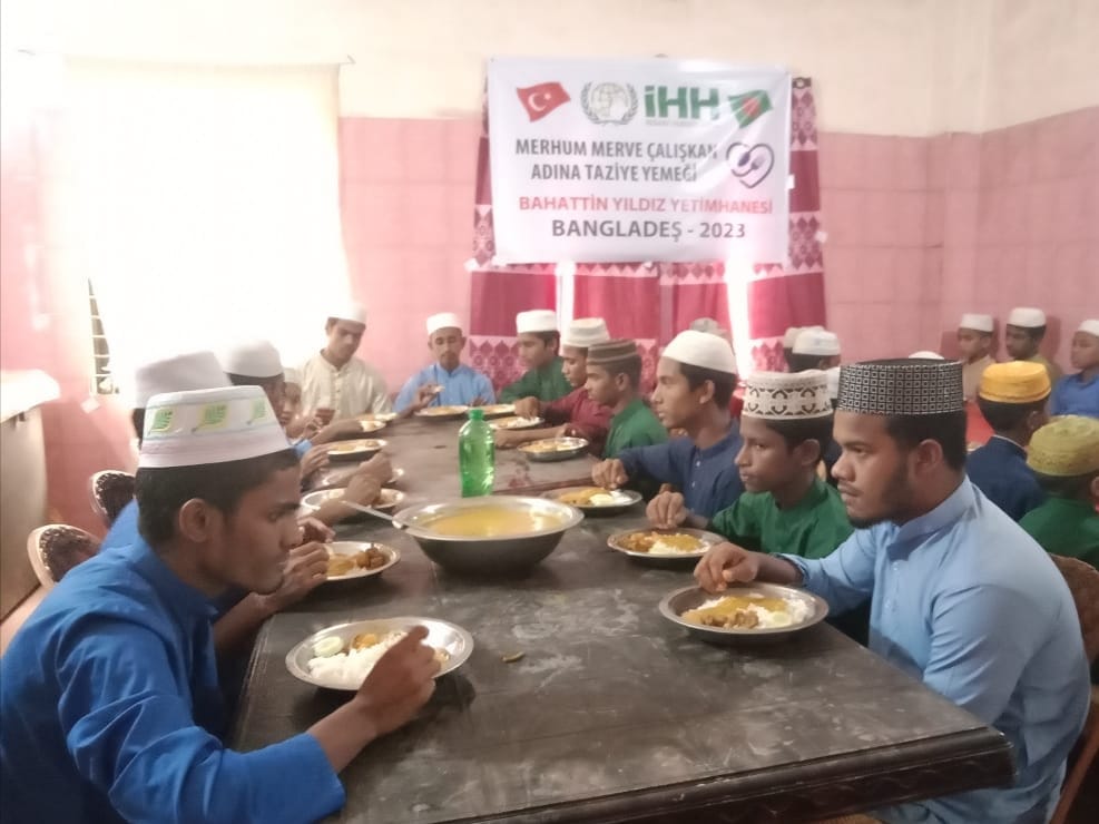 Bangladeş'te Yetimhanede kalan yetimlere merhum Merve ÇALIŞKAN adına taziye yemeği ikram edildi. Yemek ikramında bulunan hayırseverlerimize yetimler adına teşekkür ediyoruz.