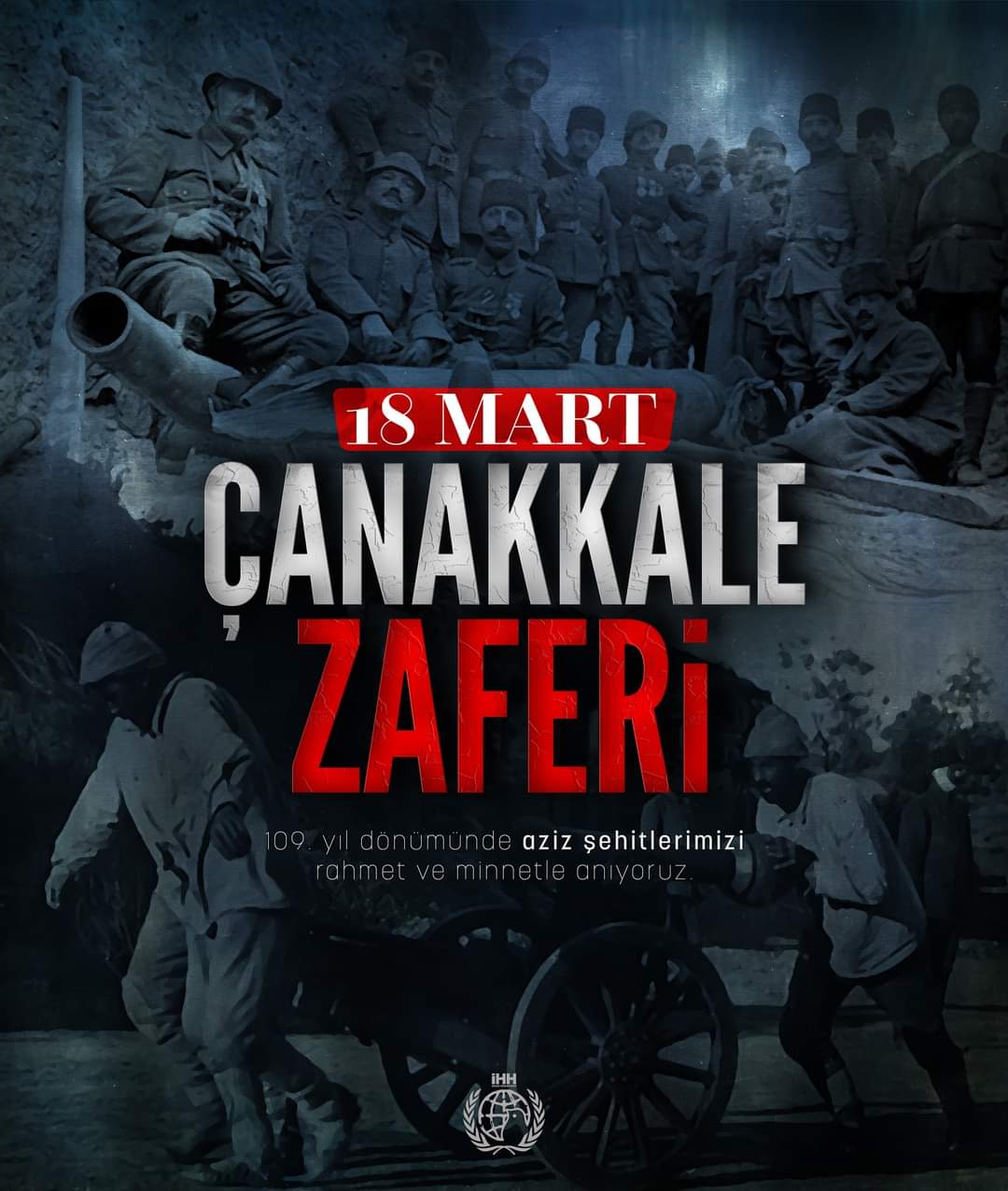 Çanakkale Zaferi'nin 109. yıl dönümünde aziz şehitlerimizi rahmet ve minnetle anıyoruz.