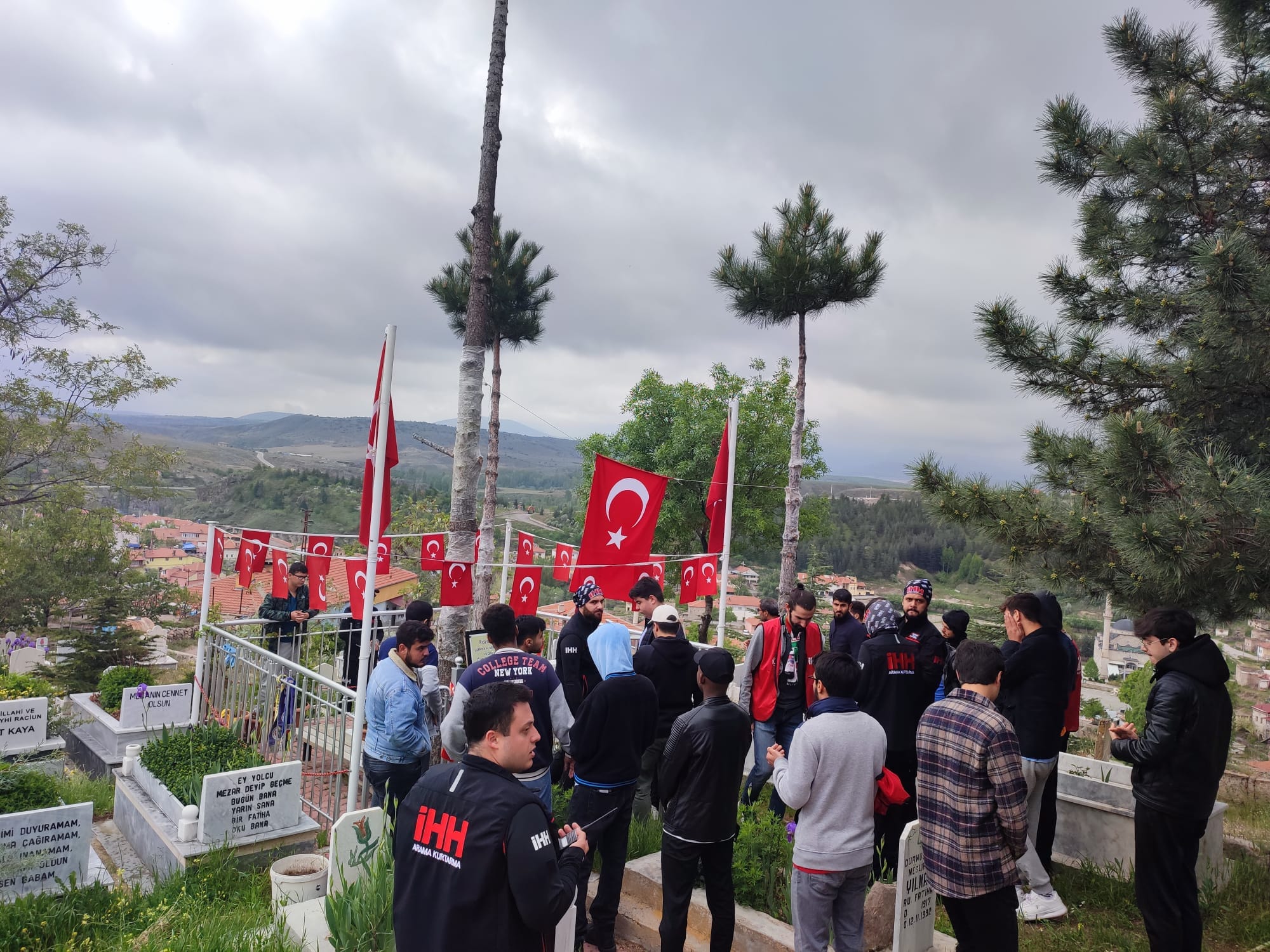 Yürüyüş öncesi ekip şehitliği ziyaret etti.