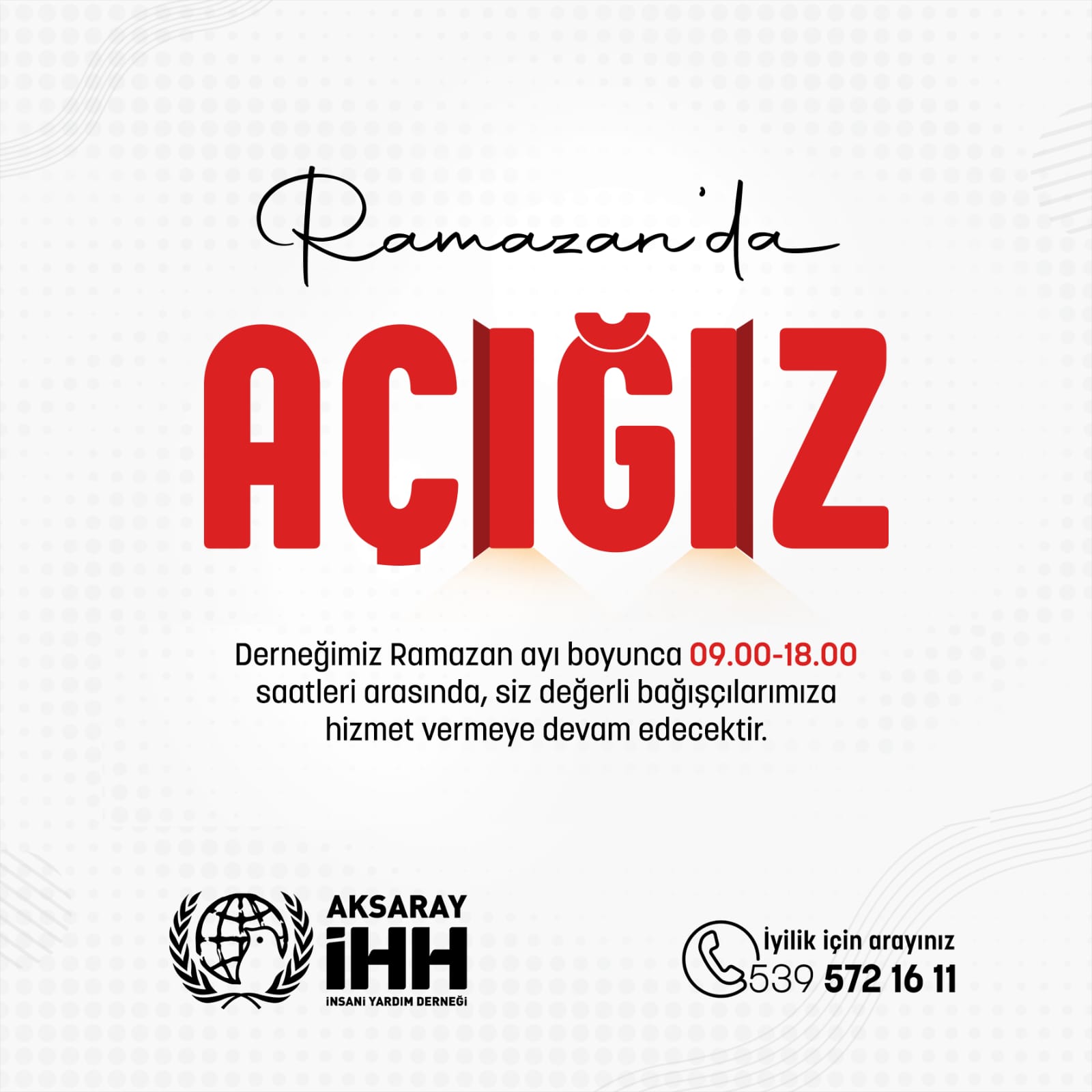 Derneğimiz Ramazan ayı boyunca siz değerli başçılarımıza hizmet vermeye devam edecektir.