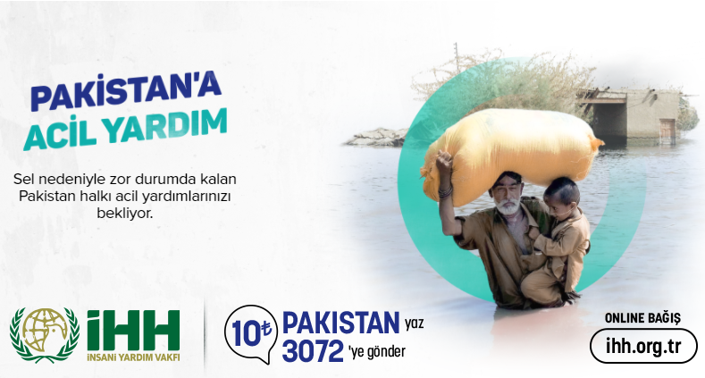 Bağışlarınız, selden etkilenen Pakistanlı ihtiyaç sahiplerine derman olacak. Acil olarak gıda, su, sağlık ve barınma malzemelerine ihtiyaç var.